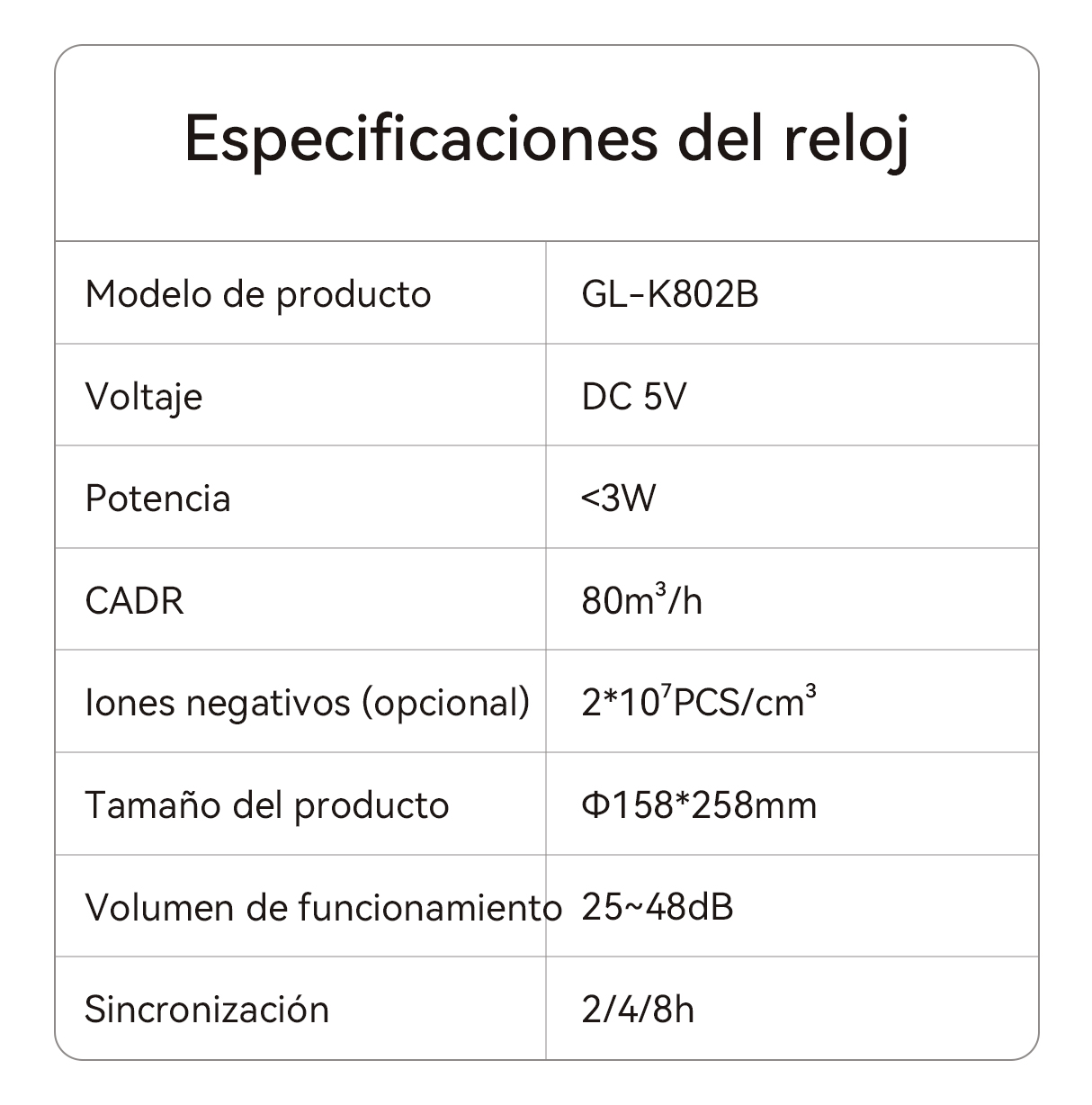 Configura tu purificador para que funcione durante una duración específica: 2, 4 u 8 horas. La función de temporizador te permite personalizar tu horario de purificación, asegurando aire limpio cuando más lo necesitas mientras ahorras energía.