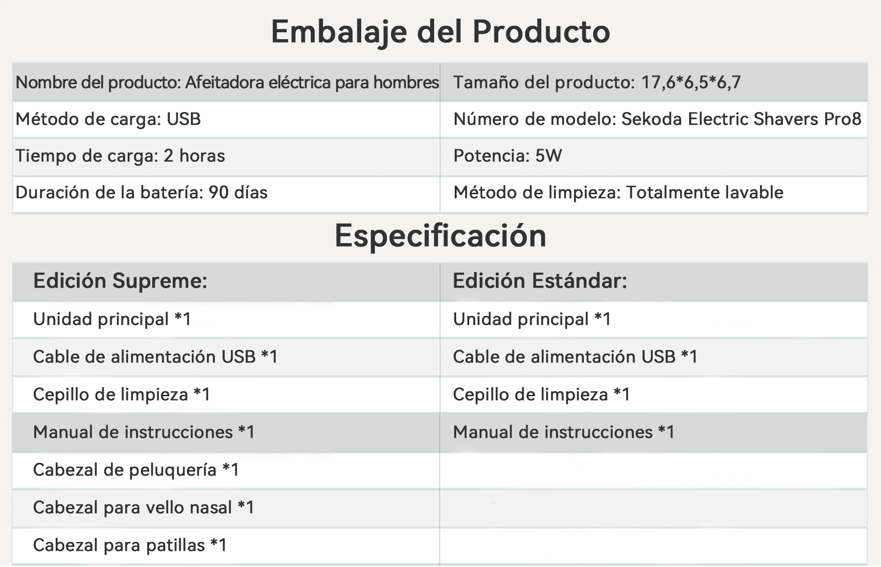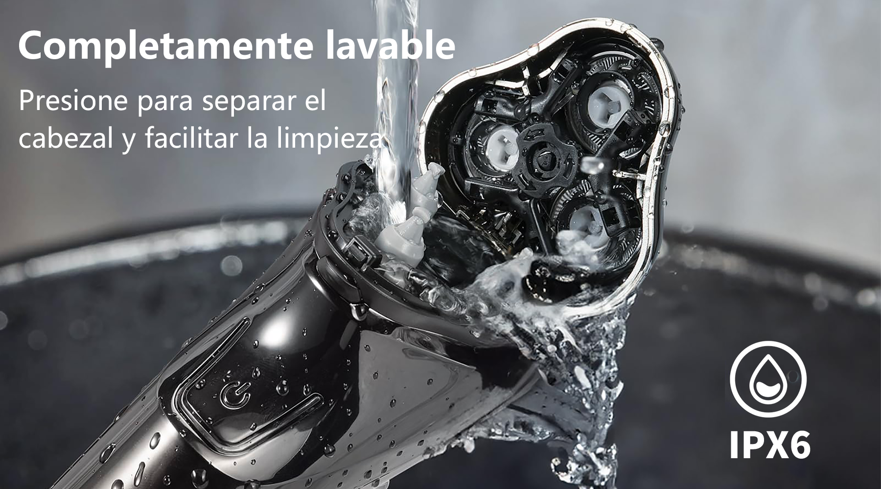 - Resistente al agua IP6X - Totalmente lavable;ideal para el afeitado en seco o en húmedo.
