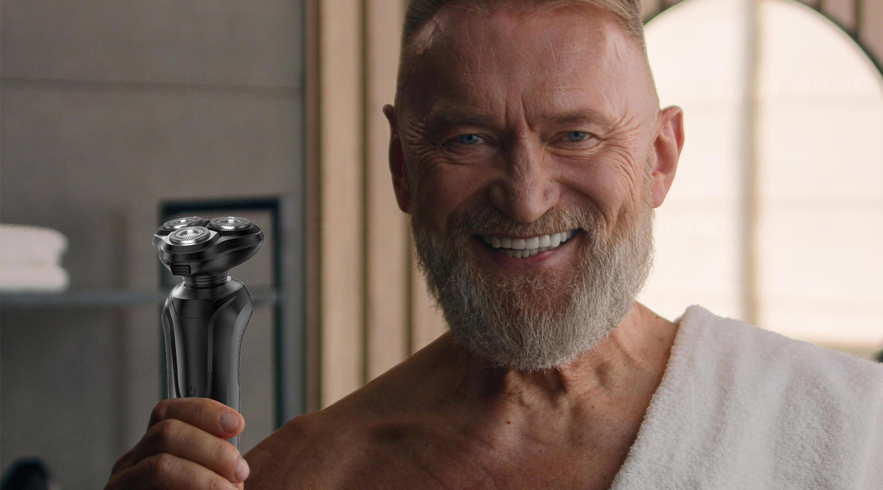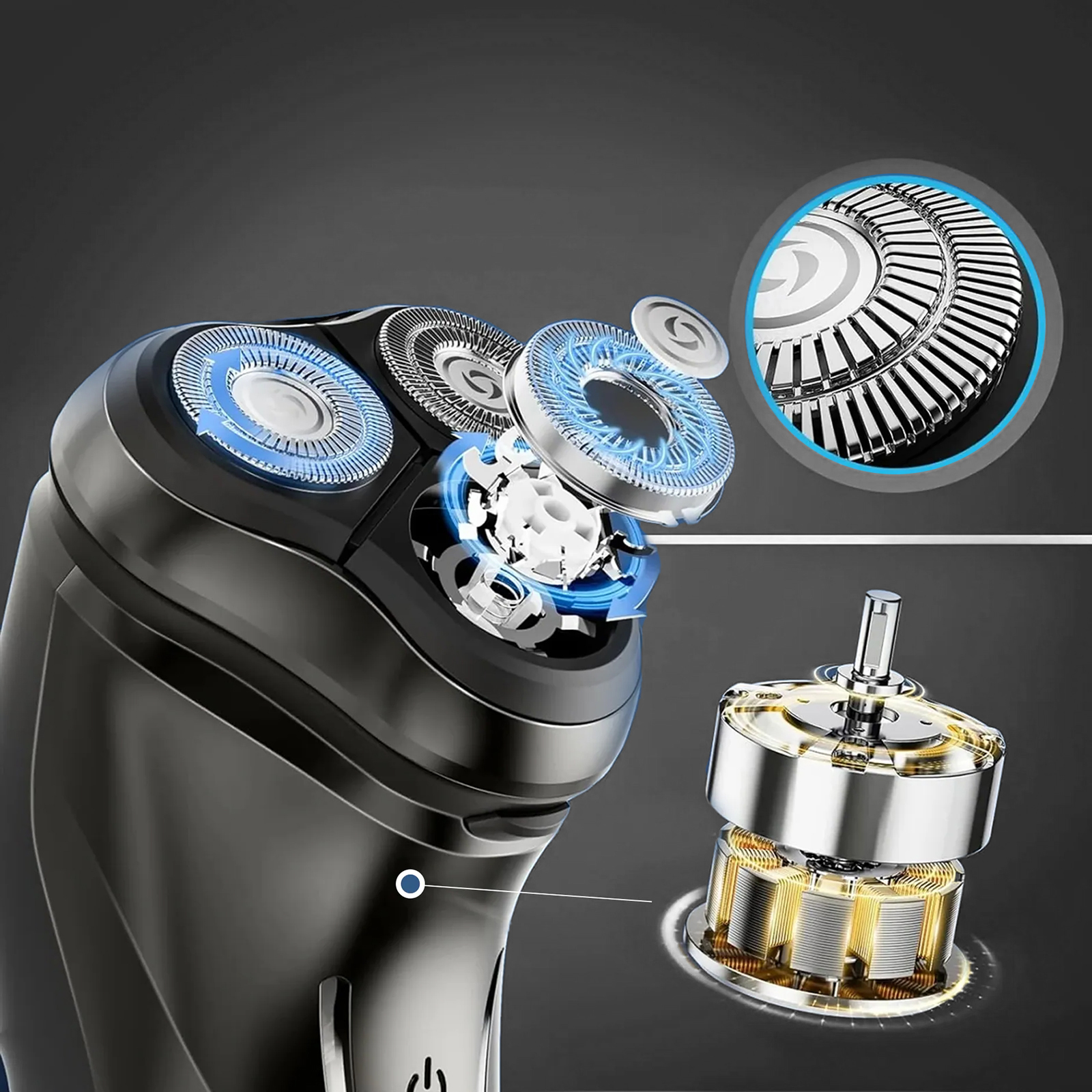 Afeitado eléctrico Krona Revitalizador diario de la piel, compañero de aseo seguro, potenciador del ritual matutino, donde la ingeniería avanzada se une a la elegancia ergonómica.
